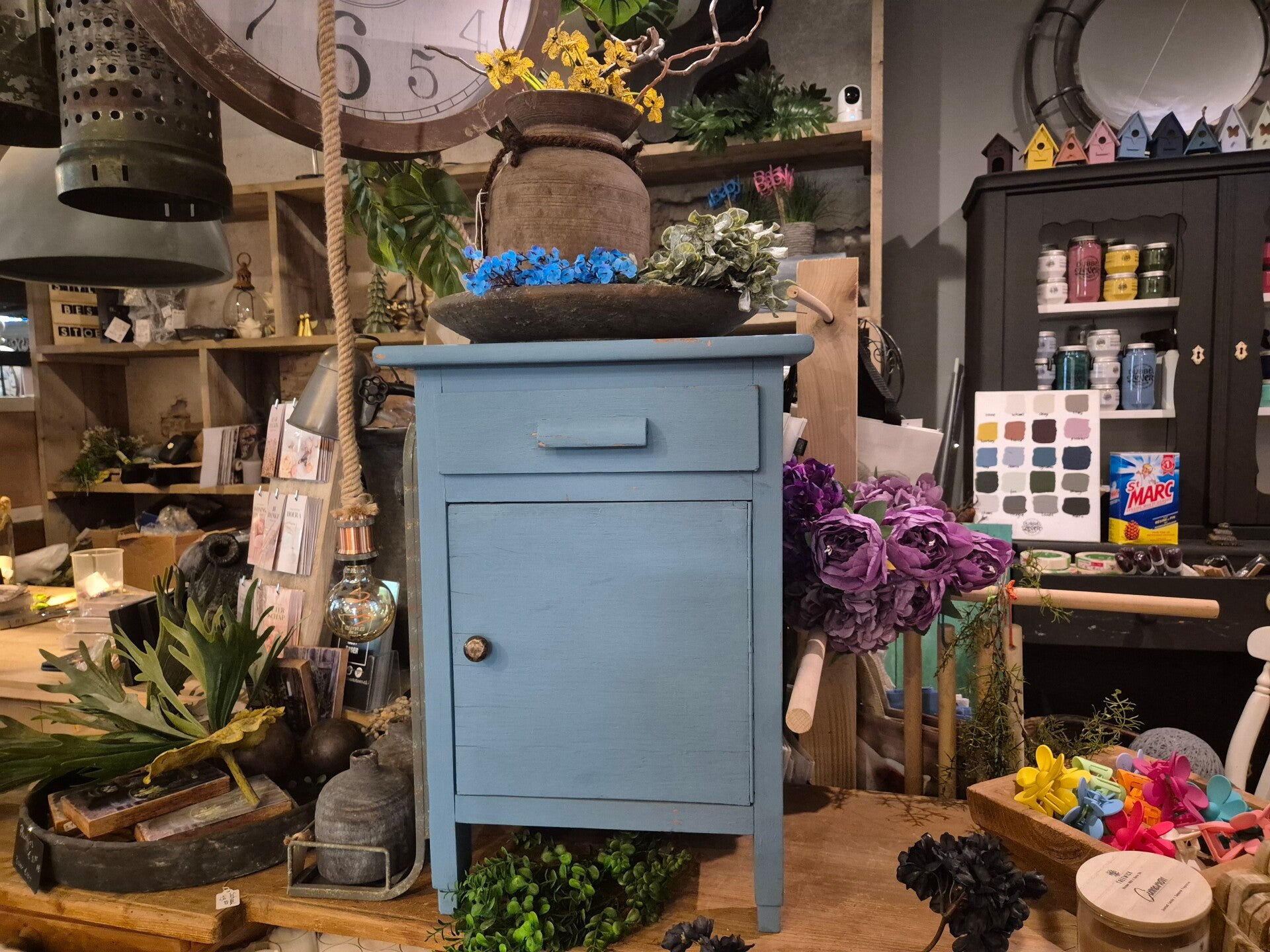 Leuk blauw kastje type nachtkastje maar natuurlijk overal geschikt om neer te zetten