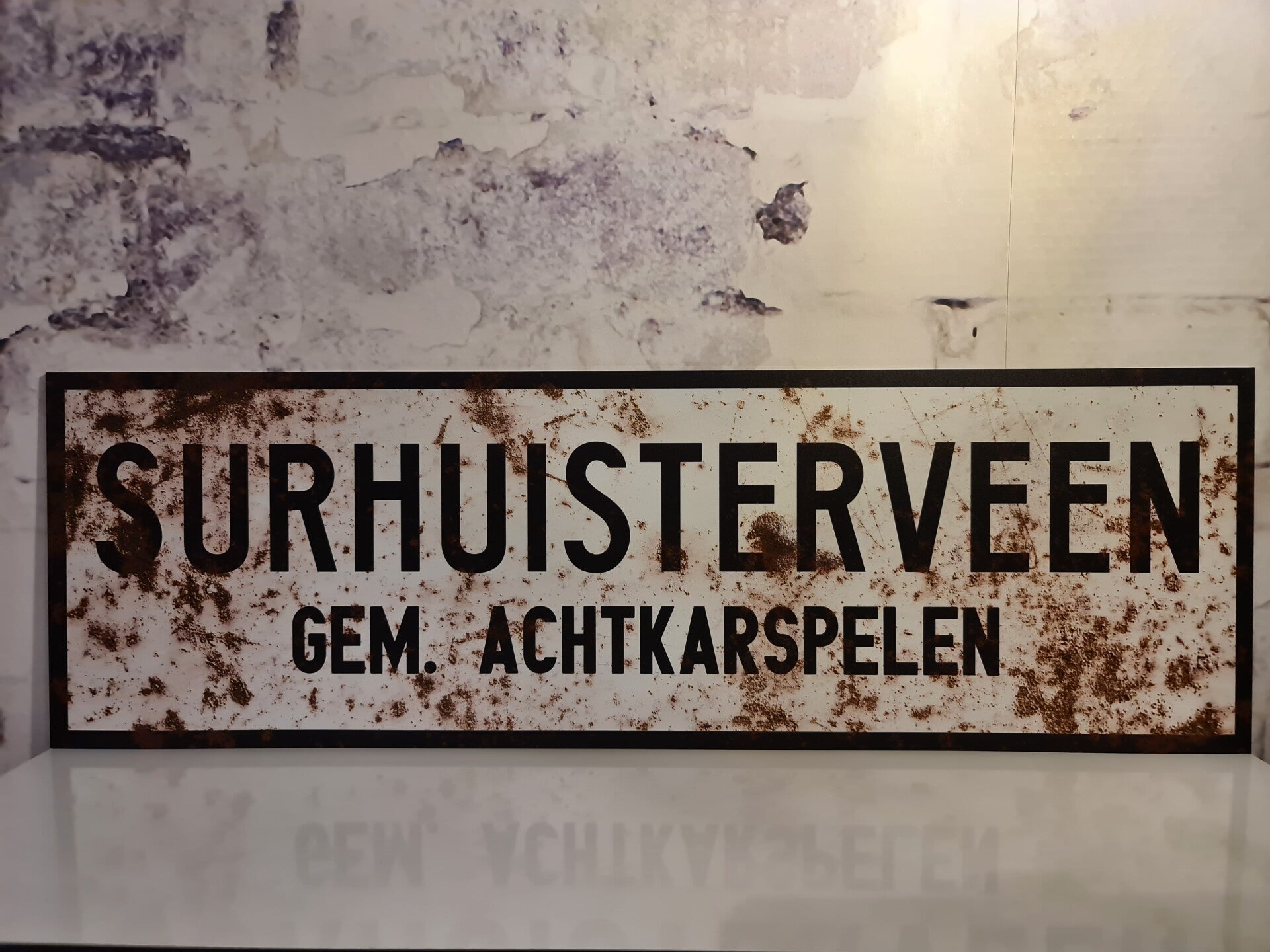 plaatsnaam bord: SURHUISTERVEEN + gem Achtkarspelen