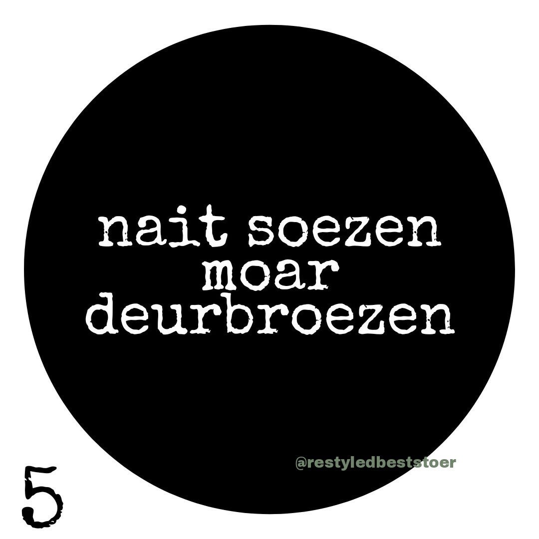 Muurcirkel met groningse tekst, zwart met witte letters.