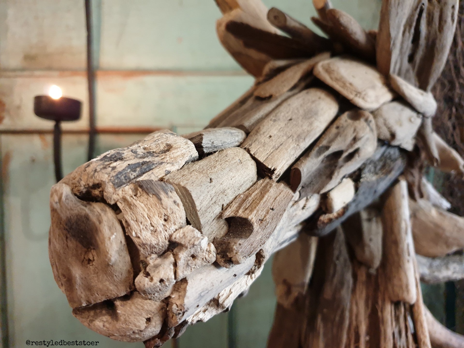 Uniek paardenhoofd van drijfhout